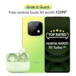 Realme Narzo 70 Turbo 5G (Turbo Green, 8Gb Ram,128Gb Storage) | Segment’S Fastest Dimensity 7300 Energy 5G Chipset | Motorsports Inspired Design is available on Amazon at best discounted online price. Original of this product is ₹ 20999.0. You can buy this product at discounted rate ₹ 17998.